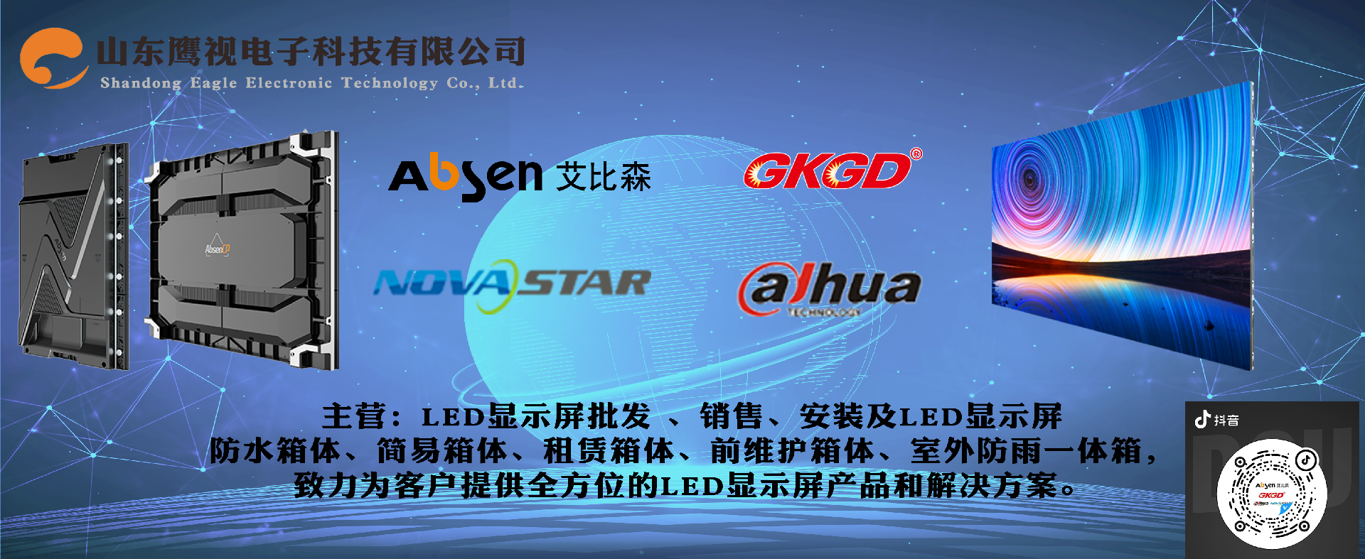 山東鷹視電子科技有限公司成立于2006年,是一家私營獨資企業,注冊資本1000萬,代理品牌:艾比森、高科、諾瓦星云和大華,公司設立臨沂總部、濟南分公司、河北分公司和箱體生產廠。公司總部坐落在江北最大物流城,又是中國第二大批發市場山東臨沂,其地理位置優越,交通便利,公司建筑面積5000多平方,員工80余人,擁有完善的售前,售后服務體系,公司業務遍及山東省內各地級市。自有箱體生產廠,專業從事顯示屏箱體生產,自產自銷,規格齊全,包括LED顯示屏防水箱體、簡易箱體、租賃箱體、前維護箱體、室外防雨一體箱,生產設計免焊易結構,使安裝更簡潔高效,致力為客戶提供全方位的LED顯示屏產品和解決方案。鷹視人員堅守“誠信 感恩 負責任”的核心價值觀,秉承“謙卑 忠誠 協作 擔當 積極主動 堅韌不拔”的企業精神,始終以精誠團結、追求卓越、為客戶提供優質產品和專業服務。 .